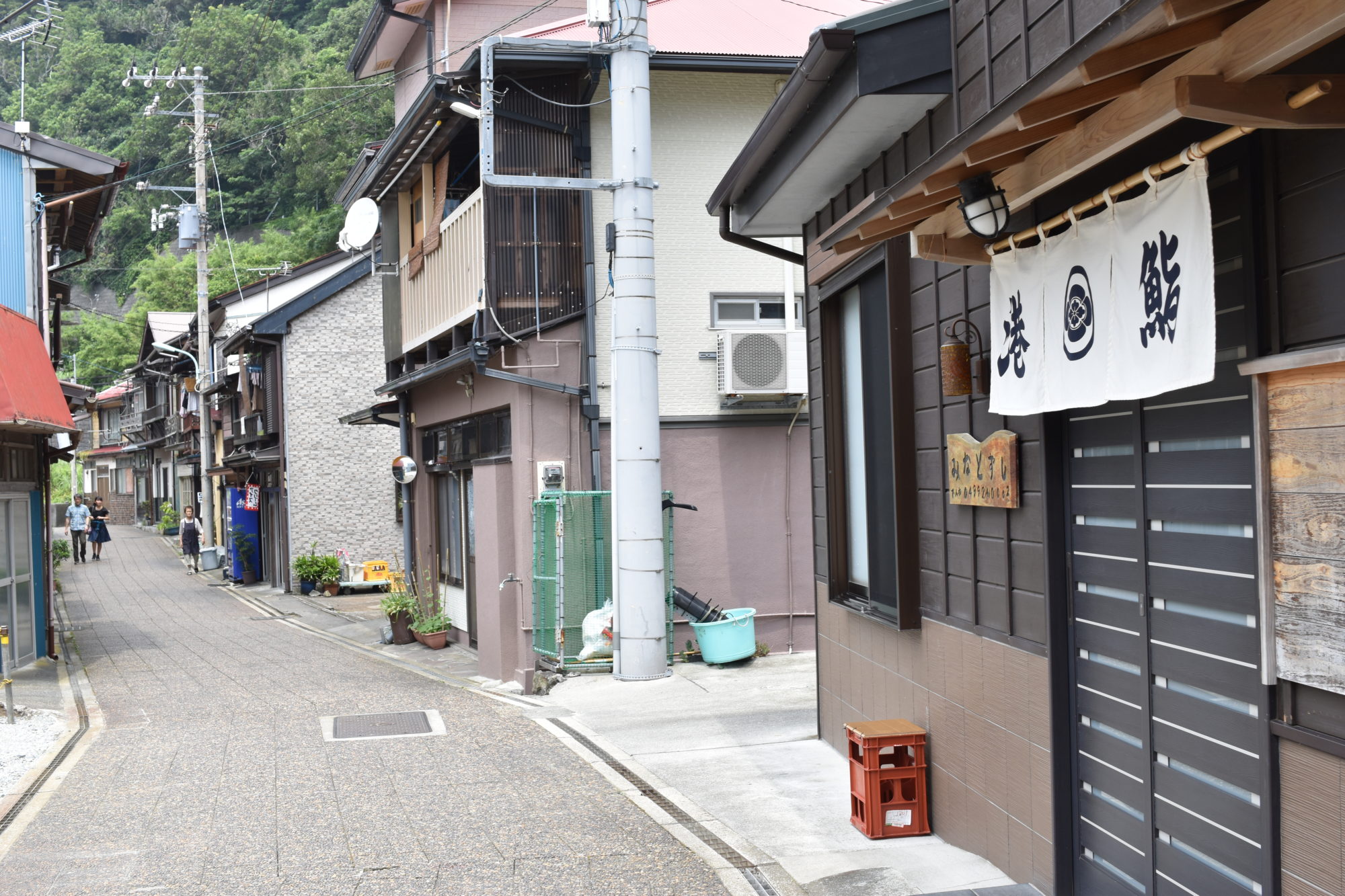 波浮港のノスタルジックな町並みの中にたたずむ、港鮨さんです。